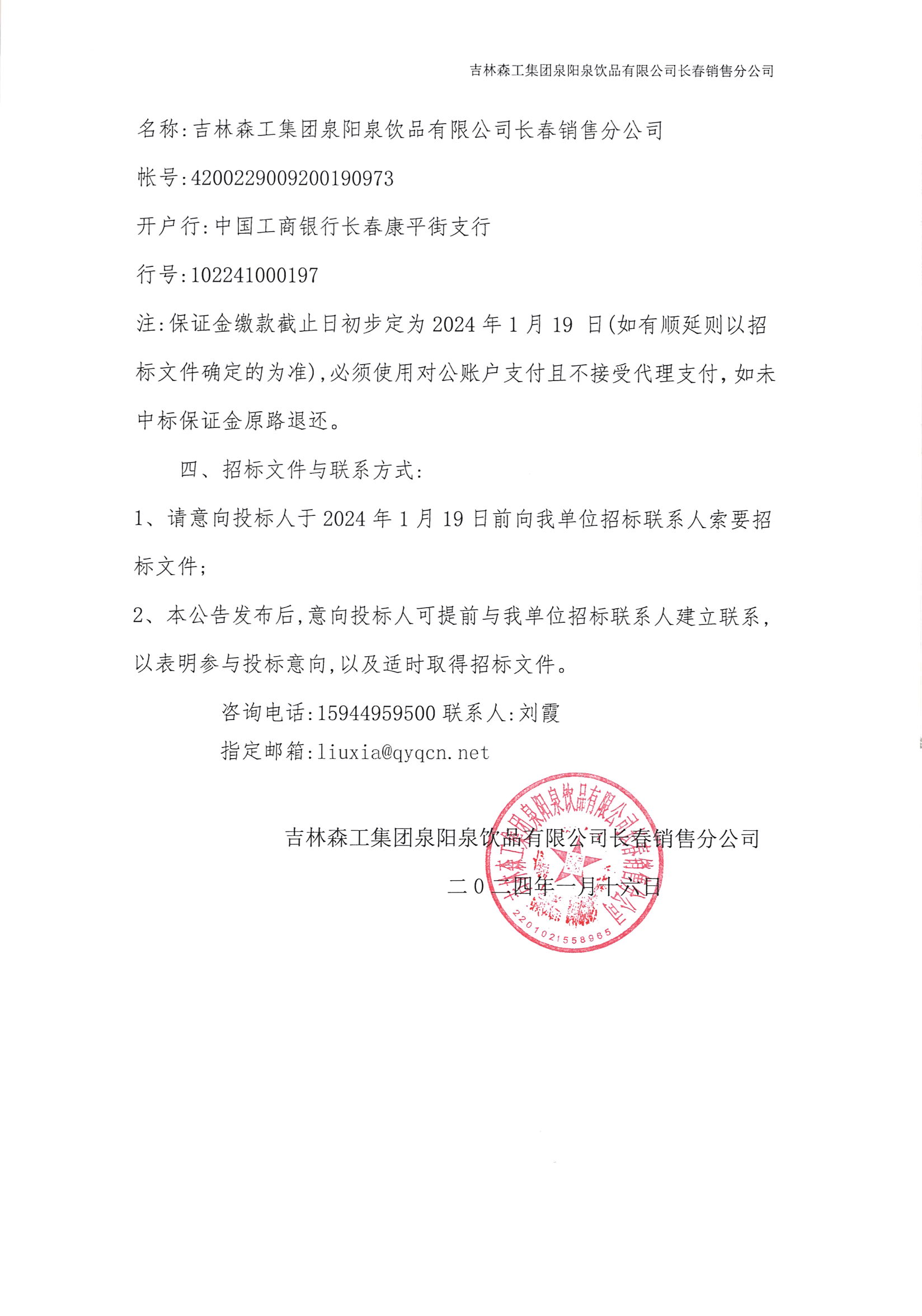 吉林森工集團泉陽泉飲品有限公司